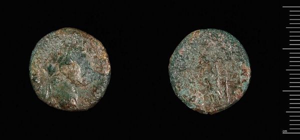 Editor: This is the Tetradrachm of Alexandria under Salonina, from the Harvard Art Museums. What strikes me is the worn texture of the metal itself, a testament to time. How do you interpret this work purely through its visual components? Curator: Its circular form, immediately suggestive of unity and cyclical time, is disrupted by the material degradation. The patination introduces a chromatic complexity—verdigris against the original metallic hue. How does this contrast affect your understanding? Editor: It makes me think about decay and the passage of power. That's really interesting. Thanks for your help! Curator: Indeed. Focusing on these formal qualities allows us to consider temporality and transformation inherent in the artifact.