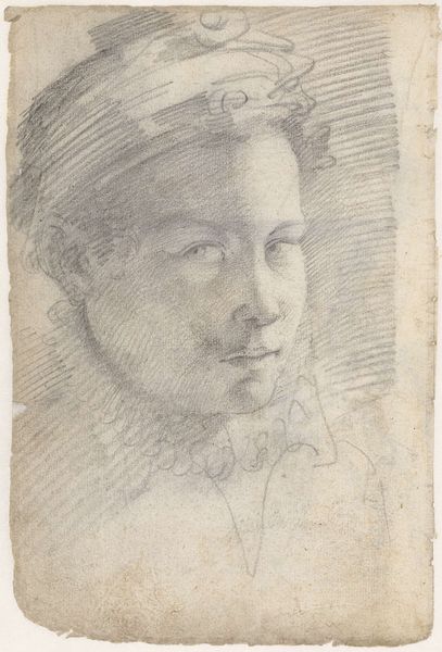 Curator: The artwork before us is a pencil drawing titled "Allen Parker" by Denman Waldo Ross. Editor: It's captivating how the geometric lines intersect with the soft shading of the portrait, creating a tension between structure and fluidity. Curator: Ross was deeply involved with the Arts and Crafts movement. His aesthetic theories significantly influenced art education. Editor: You can really see how the artist balances precise lines with the organic shape of the human form. It brings a sense of calm control and mathematical order. Curator: The dimensions of the artwork are 35.7 x 25.5 cm. This drawing offers insight into the artist’s method and his contribution to the larger movement. Editor: I see the underlying grid as a metaphor for how we structure our perceptions, revealing a deeper understanding of how we see. Curator: Indeed, it reveals much of his compositional principles, doesn't it? Editor: It certainly does.