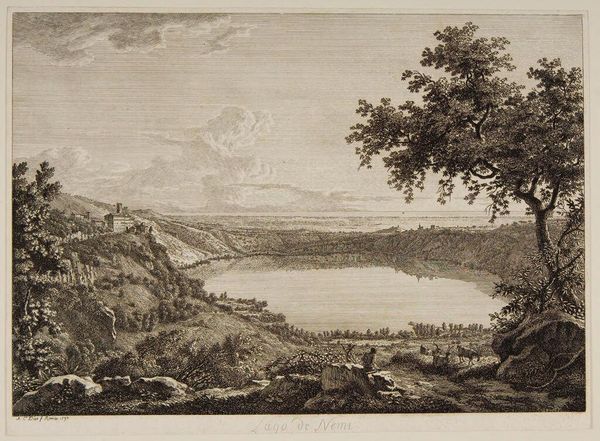 Albert Christoph Dies captured Lago di Nemi in this print. Here, the placid lake mirrors the sky, surrounded by verdant hills, evoking a sense of classical tranquility. The lake itself, named for the sacred grove of Diana Nemorensis, embodies layers of ancient memory. The cult of Diana, deeply rooted in this landscape, highlights the cyclical themes of nature, fertility, and the wilderness. The mirror of the lake, a symbol of reflection and introspection, echoes in countless artistic traditions. From Narcissus gazing at his reflection, to Ophelia's watery demise, water embodies the depths of the human psyche. Consider how this tranquil surface might conceal darker, submerged narratives, engaging our subconscious with themes of hidden depths and transformative potential. The serene landscape is emotionally compelling, drawing viewers into a space of contemplation and connection to nature. It reminds us that symbols continuously resurface and evolve.