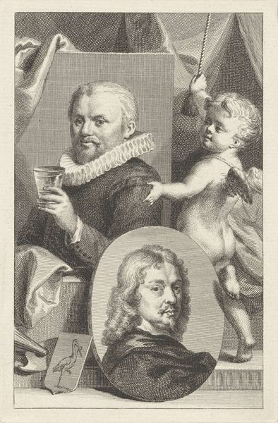 Pieter Tanjé made this print of Jan Antonisz. van Ravesteyn and Adriaen Hanneman sometime in the 18th century. It offers us a glimpse into the world of portraiture in the Dutch Golden Age, but also provides insight into the social role of artists and their images. The print celebrates two prominent portrait painters. Ravesteyn is shown standing by his easel, while Hanneman appears in a smaller portrait. An allegorical figure pulls back a curtain to reveal Ravesteyn. The inclusion of the coat of arms indicates the status of the sitter. Tanjé’s decision to depict these artists together speaks to their professional achievements and social standing within the artistic community of the time. In the Dutch Republic, art wasn't confined to the Church or Aristocracy. Instead, a thriving market emerged, driven by a growing middle class eager to display their wealth and status. Prints such as this one played a crucial role in popularizing art and making it accessible to a wider audience. To understand art, we need to investigate the social structures that shaped its production and reception. By consulting historical archives, auction records, and other primary sources, we can uncover the complex web of relationships that underpinned the art world of the Dutch Golden Age.