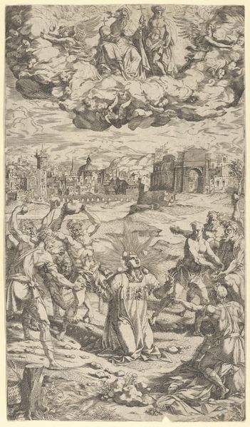 This small print of two fighting knights on horseback was made by an anonymous artist. The image gives us a glimpse into the cultural values of its time. In the foreground, two knights engage in combat, embodying ideals of chivalry and martial prowess associated with the aristocracy. Yet, this scene unfolds against the backdrop of a larger battle, hinting at broader social and political tensions. Prints like this were often made as part of larger series. They circulated widely, shaping perceptions of power, gender, and class. Consider how the portrayal of knights might have influenced notions of masculinity and leadership within elite circles. How might such images have resonated with viewers from different social strata? These prints played a role in shaping the collective imagination. They invite us to reflect on the stories we tell ourselves about heroism, conflict, and social order.