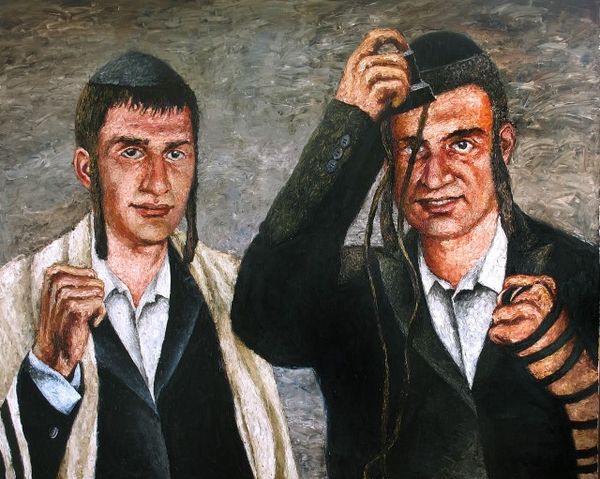 Alexander Roitburd’s ‘Interpreting the Torah’ is an oil painting that encapsulates the artist’s unique approach to figurative work. The visible brushstrokes and impasto technique give a sense of immediacy, almost as if the scene has been captured in a fleeting moment. The texture of the oil paint is palpable, creating a tactile quality that invites the viewer to consider the physical act of painting itself. This work is all about the stuff that it is made of. Roitburd's gestural approach, combined with a muted palette, imbues the painting with a sense of both intimacy and melancholy. The materiality of the oil paint underscores the labor involved in its creation. Paying attention to materials, making, and context allows us to appreciate Roitburd's challenge to traditional distinctions, as he offers a visceral depiction of culture, labor, and the physical world.