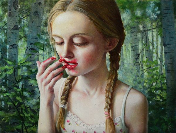 Mary Jane Ansell painted "Lenaia" with oils, and what strikes me is how the classical composition is combined with a hyper realistic painting style. Ansell is playing with historical ideas of beauty and making something new. The painting has a dreamy, almost photographic feel. Ansell’s ability to render the subtleties of light and shadow, especially on the skin and in the folds of the white fabric, creates a strong sense of depth and volume. Look closely at the soft, diffused light around her face, how it gives her skin this unreal quality, and how her expression is so ambiguous. It’s as if she’s caught between worlds. Ansell’s work often references art history, echoing the styles and motifs of old masters while imbuing them with a contemporary sensibility. You could think of artists like Jenny Saville, who also challenges and reinterprets classical portraiture through a modern lens. Ansell uses a traditional art form to ask her own questions about beauty and identity. It's like she's saying, the conversation is still open!