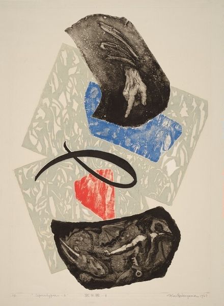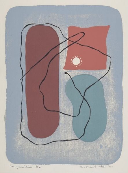 Ernst Wilhelm Nay made this print, Dominant-Blau, without a date, using lithography. The whole thing feels like a glorious mess. You have these big, flat shapes of color – blue, red, a kind of murky green – all jostling for attention. It’s not about blending; it's about the pure, unadulterated joy of putting one color next to another. The black lines squiggle across the surface, doing their own thing. Look at the top left – that blue circle with the black dot. It's like an eye, staring right back at you! Is it an eye? Is it just a shape? Who cares! It's got a presence. And the way the colors are laid down, so direct, so immediate. It's like Nay was chasing after something, trying to capture a feeling more than a picture. It reminds me of Miro, or even some of the later work of Kandinsky. They were all searching for something beyond representation, something deeper. It’s a conversation with art history, a shout into the void, and an invitation to come along for the ride.