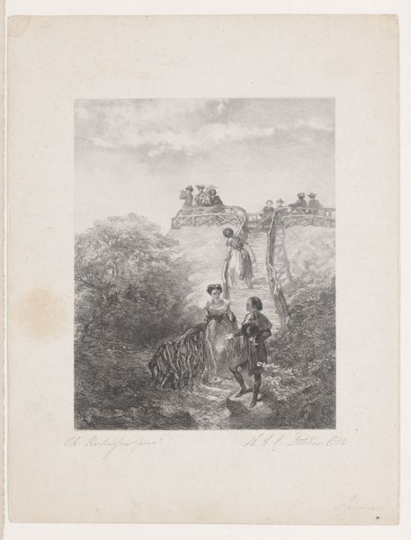 Curator: Before us, we have Paulus Lauters' 1835 engraving, "Belegering van Bouvignes," currently held here at the Rijksmuseum. Editor: Gosh, it’s a bit grim, isn't it? All that frantic energy pointed at this stoic, unyielding fortress... like a dark fairytale unfolding in shades of gray. Curator: The tonal range certainly enhances the drama. Note the strategic deployment of light and shadow; the figures in the foreground are sharply defined, drawing the eye into the chaos of the siege. Editor: Right? And all those tiny figures scaling the walls… They remind me of ants attacking a sugar cube, you know? Gives you a sense of the sheer audacity—or maybe desperation—of the whole endeavour. But what is that little flying dragon in the distance? Curator: I agree, the artist's depiction really showcases that scale differential. And, I should perhaps draw your attention to the winged beast floating at top left, a heraldic symbol—certainly not a literal dragon. A device suggesting power, strength… or perhaps even fate intervening in human affairs. The composition, too, directs the eye upwards, emphasizing the height and strength of Bouvignes' fortifications, which also serve a historical record as history painting works to reconstruct these sieges as grand. Editor: So, a blend of fact and… well, grand narrative? Like a super dramatic news report from another century. Though it does also speak of humanity in a brutal standoff against both itself and something greater, timeless and impersonal, that looms on high as the fortress looms in the landscape... It's quite striking really, the romantic element seems to amplify the futility on either side... It begs the question of if there are even good and bad guys. Curator: Indeed. The artist juxtaposes historical specificity with a broader meditation on conflict and resilience. The engraving’s texture also plays a role; the dense, interwoven lines create a palpable sense of turmoil, perfectly mirroring the historical violence the image portrays. Editor: Makes you wonder what Lauters really thought about it all. War, power… you can feel his hand in that chaos. Curator: Absolutely, a convergence of technical mastery and artistic insight, I should say. Editor: Agreed. This grim, little picture actually sparks some quite big questions! Thanks.