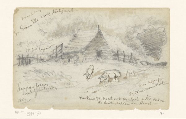 Editor: So, this is "Study of a Pyramid" by Jacques Louis David, made sometime between 1760 and 1825. It's a drawing, and the overall feeling I get is one of...ambition, but also a little strange with those almost classical buildings seemingly glued on. What do you see in this piece? Curator: What immediately strikes me is the way David appropriates ancient Egyptian motifs within a context of burgeoning European Neoclassicism. It begs the question: What function did these historical references serve? Was it simply aesthetic, or did it speak to the era's political aspirations? Editor: Political? How so? Curator: Consider the era. The French Revolution was looming or had just happened, depending on the date of this drawing. Pyramids, evoking permanence and power, were potent symbols. Did David intend to comment on revolutionary ideals, perhaps hinting at both their ambition and potential for tyranny, or vice versa by contrasting it to Greek temples, representing liberty? Also, consider that this isn’t an exact replica. Do you notice how David alters the pyramid by integrating classical structures, almost domesticating the exotic, thus imposing European aesthetic values? Editor: I see what you mean. The blending seems like a claim, visually placing European culture in dialogue with—or even in control of—Egyptian grandeur. It’s about museums too: which art gets displayed and who interprets it. Curator: Precisely. It prompts us to reflect on the Western gaze and its impact on shaping the narrative around ancient civilizations. Who controls history controls the present, right? Editor: That’s really made me rethink the drawing. I came in just thinking ‘pyramid’, now it seems about cultural power. Thanks! Curator: Indeed, thinking about context can radically change how we see, and understand a work of art. Thanks for the fresh perspective!