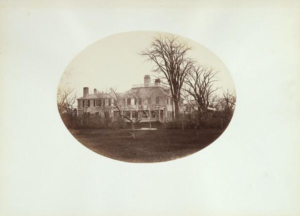 Curator: This is an untitled photograph by Mary Georgiana Caroline Cecil Filmer, depicting a view of East Sutton Park. Editor: What immediately strikes me is the subdued, almost melancholic atmosphere. The tones are muted, emphasizing the sheer scale of the estate. Curator: The composition is certainly deliberate. Note how the formal gardens in the foreground lead the eye towards the architecture, creating a balanced arrangement of nature and design. Editor: Absolutely, and it's a testament to the labor involved in maintaining such a landscape. Consider the gardening practices of the time, the physical work required to shape the grounds… Curator: An interesting point. However, I am drawn to the play of light and shadow, the formal rendering of the building's facade. The photograph possesses a certain architectural quality. Editor: True, yet I can't ignore how the image captures a specific moment in the history of labor. The materials and construction of both the house and the garden, shaped by human hands… Curator: I appreciate your perspective. It leaves me with a renewed appreciation for the photograph's formal qualities, and I recognize the tension between the intended design and the realities of its creation. Editor: Precisely, and it is in this tension that we find a deeper understanding of the work itself.