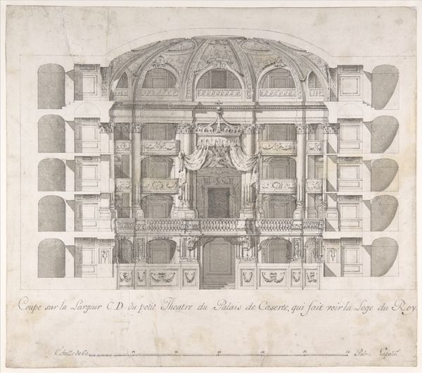 Editor: This is "Amphitheater of Verona (Panel 1)" by Cristoforo dall'Acqua, held at the Harvard Art Museums. It's fascinating how the artist captured this ancient structure with such precision. I find the composition both architectural and artistic. What do you see in this piece? Curator: The amphitheater, a symbol of Roman power and entertainment, takes on new layers in this print. Consider how Dall'Acqua transforms a space once echoing with gladiatorial combat into a subject for study and admiration. The meticulous detail invites reflection on the passage of time and the shifting meanings we ascribe to places. Does the inscription offer any clues? Editor: It seems to be about the amphitheater's construction and its resilience despite earthquakes and other calamities. Curator: Precisely. It speaks to cultural memory and continuity. This print is not merely a record but a testament to the enduring human desire to preserve and celebrate the past. Editor: I see it now, it's a record but also a powerful symbol of resilience and memory. Thanks for illuminating that for me!