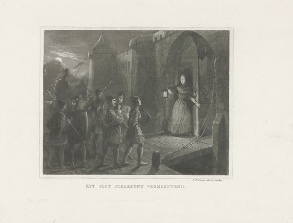 Joseph Pinnoy created "Les élections en Belgique" in 1831, a print that captures a bustling election scene with striking contrasts in light and shadow. The composition is divided, with a brightly lit speaker on the right and a darker, animated crowd to the left, creating a dynamic interplay that draws the eye across the scene. Notice how Pinnoy uses light not just to illuminate, but to emphasize power. The speaker, bathed in light, occupies a position of authority, while the shadowed crowd suggests a more complex, perhaps even subversive, energy. This contrast creates a semiotic tension, where light and dark become signs of power and the public. The architectural setting, with its rough textures and stark lines, adds to the sense of a society in formation. Pinnoy uses the formal elements of the print to explore the nascent political structures of Belgium. The rough texture adds to the historical narrative, and the use of light and shadow invites us to question the nature of representation itself.