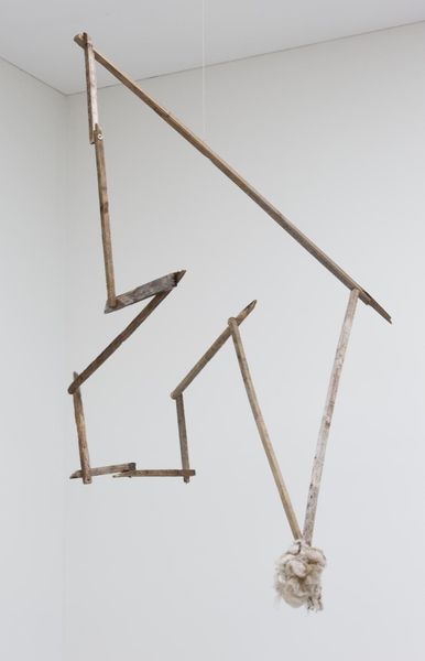 Editor: This assemblage sculpture is Rebecca Horn’s "Pencil Mask" from 1972, made with metal and pencils, a really striking combination of readymade elements. I’m immediately struck by its almost threatening aura; the pencils give it a prickly, defensive quality. What do you see in this piece, looking at it from a historical viewpoint? Curator: Well, let's consider the socio-political landscape of 1972. What societal concerns might an artist like Horn be addressing through such a piece? The Pencil Mask seems to speak to both confinement and potential. Horn was known for exploring the body and its extensions, particularly within a feminist context. Editor: So, could the mask represent the restrictive roles placed on women, but also suggest a means of defense or even creation? Curator: Precisely! Think about the pencil as an instrument of both power – intellectual, artistic – and potential danger. In the early 70s, feminist artists were actively reclaiming agency and challenging established art world norms. Does this work seem to resonate with those broader cultural shifts? Editor: Definitely! It makes me consider how the readymade element also plays a part. Using pencils in this way subverts their intended purpose, highlighting a societal commentary. What about its presence within an institution? Would this kind of radical feminist expression face pushback or challenges? Curator: Absolutely. The acceptance and display of such work within mainstream institutions were, and sometimes still are, a contentious process. Museums walk a line between reflecting cultural change and perpetuating established norms. "Pencil Mask," forces that kind of conversation, even today. Editor: This artwork is really powerful; I’m walking away with an understanding of the societal issues influencing it, particularly around gender and how museums affect artwork reception. Curator: I concur; by looking at it through a critical, socio-political lens, it seems like "Pencil Mask" continues to ignite reflection, discussion, and engagement with broader society issues.