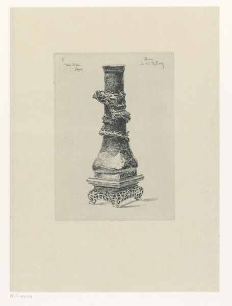 Editor: We are looking at a photograph, “Met reliëf gedecoreerde zuil,” or “Column decorated with relief”, circa 1880-1900, by Carlo Naya. It is a beautiful detailed rendering of a sculpture. I am curious what the role of a sculpture like this may have played in the late 19th century. What is your take on it? Curator: This photograph highlights a specific type of 19th-century sculptural reproduction. Its availability as a photograph democratized access, moving artwork beyond elite circles. Consider the context: photography's rapid growth allowed people to engage with art and artifacts, real or imagined, far removed from their daily lives, influencing personal taste and cultural identity on a broad scale. Editor: That’s interesting. Did the subjects typically reflect values that were in keeping with the broader culture? Curator: Absolutely. Columns, often embellished with historical or allegorical narratives, embodied ideas of power and progress. Its sculptural elements— the lions and cherubic faces, the ornate clock —are these markers of specific political messages or cultural values of the time. Were the photographic reproductions, like this one, more about accessibility or about furthering an agenda? Editor: Both, maybe? It provided an immediate experience, but the reproduction itself still came with its own intentions and socio-cultural background, which now I realize must have had an effect on shaping popular taste. Thanks, that clarifies it a lot. Curator: It has been a pleasure! Looking closely at the public role of art is essential.