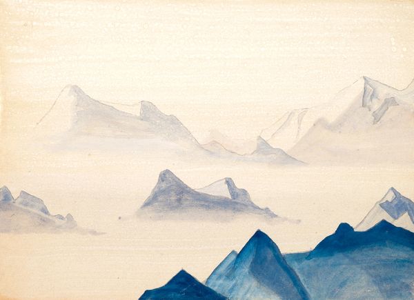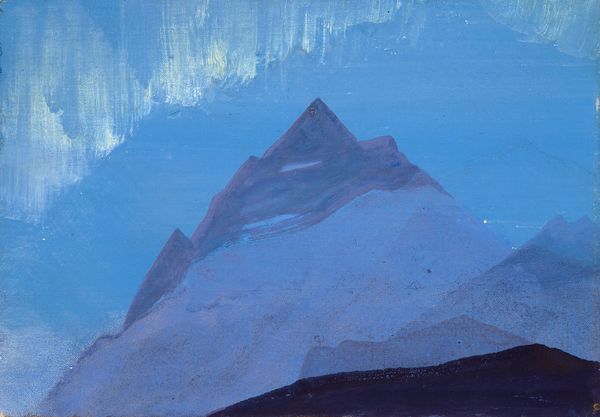 Nicholas Roerich, a Russian artist deeply engaged with the spiritual and cultural heritage of the East, painted "Path to Kailas," a watercolor, sometime during his travels. Roerich's spiritual quest and firm belief in the interconnectedness of humanity and the cosmos shaped his artistic vision. In this painting, the subject of Mount Kailash becomes a symbol of spiritual ascent. The mountain, revered in Hinduism, Buddhism, Jainism, and Bon traditions, is rendered in muted blues, grays, and pinks, evoking a sense of serenity and sublime otherworldliness. The lack of human presence emphasizes the grandeur of nature and its transcendental essence. Roerich's choice to depict Kailash reflects his commitment to exploring the convergence of art and spirituality. He saw art as a medium for fostering cross-cultural understanding and promoting peace, ideas he pursued through his paintings and extensive travels in Asia. "Path to Kailas" isn't just a landscape; it's an invitation to reflect on our place in the universe and the spiritual journeys we undertake.
