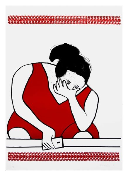 Editor: This is Barbara Kruger’s “Untitled (Your body is a battleground)” from 1989. It's a photograph with text overlaid. It strikes me as incredibly direct and forceful. What do you see in this piece? Curator: The immediate visual dichotomy—the split face, light and shadow—creates a profound sense of inner conflict. This division, amplified by the stark typography, functions as a powerful symbol. Kruger’s layering of text onto the image creates a dialogue. Consider the phrase itself, "Your body is a battleground.” Editor: How so? Curator: Whose body is being discussed? And what battles are being fought? The red and white evoke a sense of urgency. Kruger often appropriates images from mass media and advertising, recontextualizing them to critique power structures, gender roles, and consumerism. She invites us to examine how societal forces inscribe themselves onto our very being. The poster served as feminist propaganda during the 1989 pro-choice march on Washington, responding to legal limitations on reproductive rights. What memory is encoded by it for viewers today? Editor: So it’s not just a personal struggle but a political one too? Curator: Exactly. The photograph, fractured and overlaid with those declarative words, becomes an icon for bodily autonomy and resistance. The symbol lives beyond that moment in 1989. Editor: I didn't realize how many layers there were. The slogan becomes much more pointed now. Curator: Visual symbols build in power over time; context, cultural memory, and political movements shift an image’s meaning. Understanding that evolution unlocks deeper understanding. Editor: I see what you mean. The impact definitely deepens.