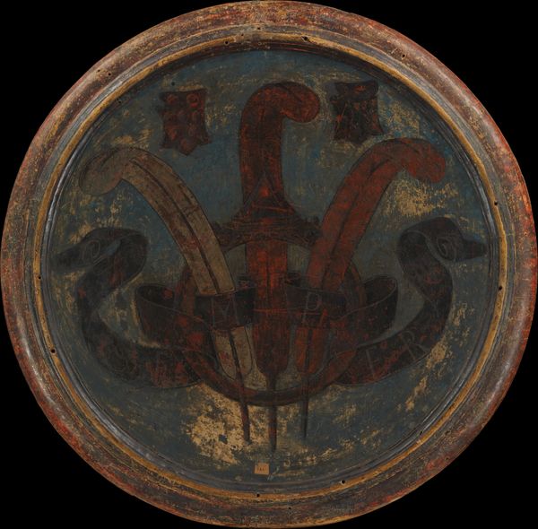 Editor: This relief sculpture, "Inscription (reverse)," made by Josette Hébert-Coëffin in 1951, presents a series of enigmatic symbols etched onto a circular metal surface. The almost talismanic quality really intrigues me. How do you interpret this work within its historical context? Curator: It's fascinating how Hébert-Coëffin uses abstract-expressionism to evoke a deeper cultural narrative. What stands out is the intentional obscurity. Do you think this abstraction provided the artist freedom in the repressive socio-political environment of the time? Editor: That’s a good point! I hadn’t considered that angle. The personal and political intertwining within the symbolism itself – almost like coded messages. Does the museum setting alter or amplify these potential interpretations? Curator: Absolutely. The institutional space has the power to validate certain narratives while potentially obscuring others. Our curatorial choices, how we contextualize the work, affect the audience's interpretation and ultimately its cultural impact. Think about how this work would be perceived if it was displayed outside versus inside the gallery. Editor: That makes a lot of sense. Considering its accessibility and public perception is an important facet of understanding the work. What I’m seeing is its fascinating cultural story and its subtle rebellion within the abstract-expressionist mode. Curator: Precisely! This piece prompts us to think about the interplay between personal expression, historical forces, and the mediating influence of institutions on our understanding of art. Editor: Thank you for this insightful analysis. It's really widened my perception of the artist's intent. Curator: My pleasure! This kind of art compels us to rethink the social life of the art itself.
