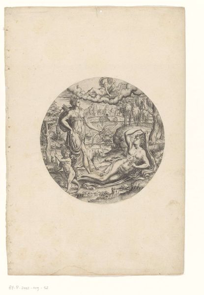 Curator: It looks like a dream on paper; light, delicate, maybe even fragile. Editor: That’s a fine initial impression for what we know as "Amazone", an engraving by Arnoud Schaepkens. The dating is a bit vague, somewhere between 1855 and 1904. Curator: “Amazone”, yet there’s this hazy quality that undermines a powerful title. The woman seems more a figure of reverie than action, which feels enhanced by the delicate linework. I wonder, what's being remembered here? What symbolic role does she carry? Editor: The material execution and the way prints are traditionally circulated—multiple impressions, often small-scale like this—suggest a wide distribution for potentially ideological purposes. Given the period, how does this reflect, or perhaps subvert, popular ideas of female empowerment tied to nationhood? Curator: Indeed! We see women as allegorical figures embodying nations, liberty, justice. The horse adds to that… a traditional emblem of power, harnessed and guided. It would be important to analyze which artistic tradition informs its symbolism—classicism, romanticism— to see how Schaepkens is positioning this figure in broader visual culture. Editor: Considering this as a print, it immediately connects us to a tradition of easily reproducible imagery aimed for wider audiences beyond elite circles. How the line quality affects its aura— its commodity value— against an original artwork, reveals certain social dynamics surrounding artistic production in this period. I am quite keen to examine further the impact and reach of the prints such as "Amazone." Curator: I am struck again by its ambiguousness and softness, despite what "Amazon" invokes historically. Thanks for your interesting views; I find it's more dreamlike than ever now. Editor: Thanks to you! Understanding its materiality encourages thinking beyond aesthetic concerns, touching upon its historical influence, cultural value and distribution.