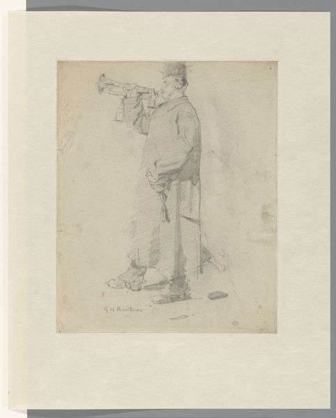 Editor: We're looking at "Mikel Glisner," an 1821 engraving by Ernst Meyer, housed in the SMK. It portrays a man, possibly a servant, standing in profile. The intricate line work and delicate shading gives it a really somber tone. What do you see in this piece? Curator: This seemingly simple genre painting opens up a dialogue about class and representation in early 19th century Denmark. Notice the man's worn attire: his patched clothes and sturdy boots speak to a life of labor. How might Meyer be engaging with contemporary ideas about the working class? Editor: Well, the Romantic period was very interested in the common man. Is this a Romantic celebration of the everyman? Curator: Perhaps. But consider, too, who is depicting this "everyman," and for whom? Meyer was part of a privileged artistic circle. How might his perspective shape the image and what values does it reflect or challenge? Editor: I guess it isn't straightforward to see this as pure celebration then. So, is the artist trying to engage with themes like inequality? Curator: That's precisely the tension that makes it so interesting. It hints at a more complex narrative about social standing, perhaps subtly critiquing the social hierarchy or attempting to give visibility to an overlooked figure. Who has the power to create images, and whose stories are told—and how? Editor: That's fascinating. It makes me rethink how seemingly simple portraits can reflect on a bigger societal issue. Curator: Exactly. It highlights the power dynamics embedded in the act of representation itself and shows us how class is a key identifier of this work and an important avenue for deeper contextual analysis. Editor: This really changed the way I think about artworks. Thanks!