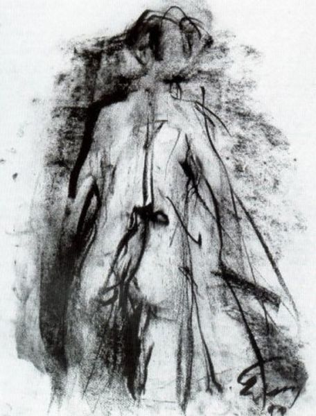 Pietro Lazzari made this figure, Adam and Eve (1), with ink, and it feels like a fleeting thought captured on paper. The ink is splattered and dripped, it's like he's wrestling with the story, trying to pin it down. The figure emerges from a chaotic mass of marks. Look at the head, a dense, dark cloud of ink, sitting atop that fragile, spindly neck. It is as if Lazzari is trying to find form from abstraction. That one arm reaching out, almost disconnected, feels like a question. Is it reaching for knowledge, for connection, or just grasping at the unknown? It reminds me a little of Giacometti, that same sense of searching for the human form in the void. It's a reminder that art isn't about answers, it's about the messy, beautiful, and sometimes awkward process of trying to make sense of it all.
