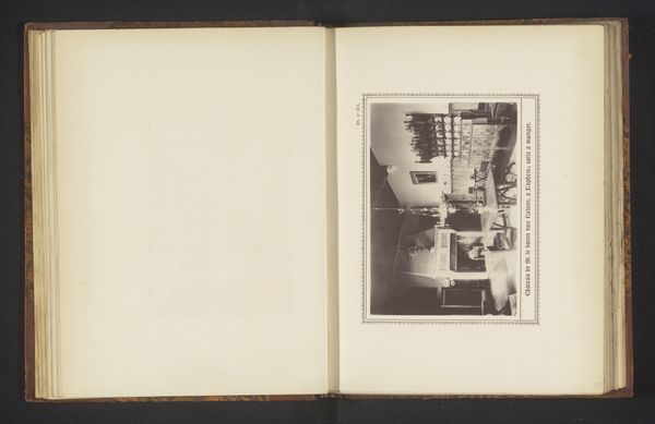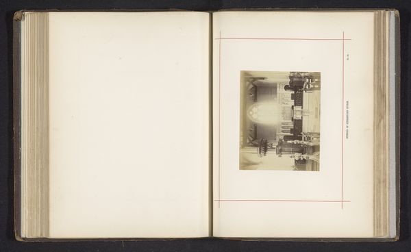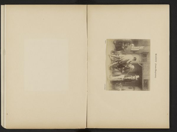 Editor: This is an interesting object! It's a stereoview titled "Stereofoto van het vastklemmen van de druivenpers," created before 1892 by Adolphe Louis Donnadieu, and appears to be an albumen print. It looks like it's presented in an old book, and the imagery itself feels quite grainy and aged, doesn't it? I find it makes the image somehow very intimate. What do you make of this unusual format? Curator: Intimate is a perfect word. It feels like stumbling across a hidden family treasure, a peek into a past life focused on simple production. The stereoview itself, with those two almost identical images, was incredibly popular in the late 19th century as a way to experience a sort of virtual reality. Viewing them created a 3D effect that was like…magic! Editor: Ah, interesting! So it's kind of like a View-Master! Curator: Exactly! The book presentation is quite charming. I imagine someone carefully placing this treasured memory within those pages. It invites a more thoughtful consideration than a loose photograph might. It asks us, doesn’t it, to pause and connect with that moment in time. Think about those hands working the press. What did it feel like? What stories could they tell? Do you feel like you can smell the fermenting grapes? Editor: Absolutely, the texture and tones evoke a strong sense of the past, almost tactile. I’d love to leaf through the whole thing. Curator: Me too! It makes you wonder what other secrets this particular volume holds... what lost realities await rediscovery? Editor: I agree. The photograph's context changes its nature, making it more precious. Thanks for sharing this!