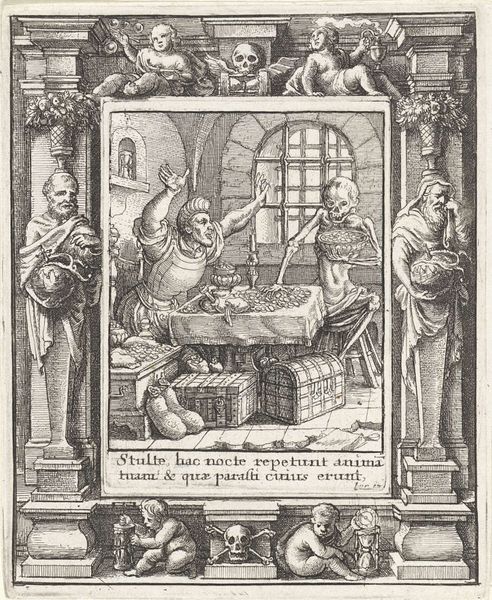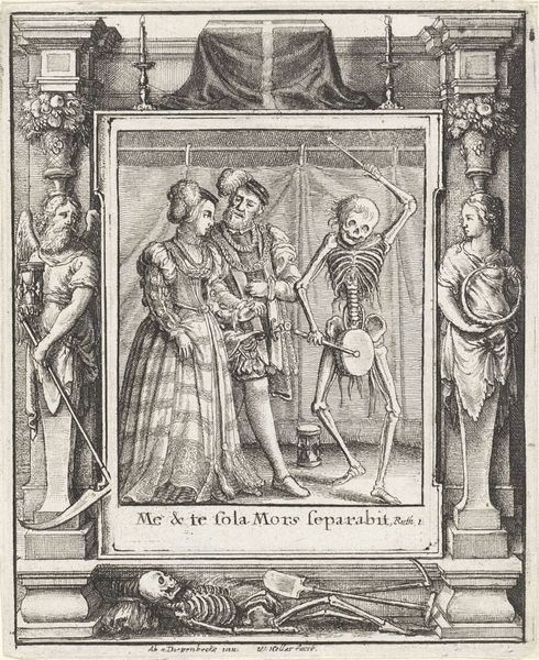 Wenceslaus Hollar etched "The Peddler and Death," presenting us with a stark vision of mortality. Here, we see the Grim Reaper himself assisting a burdened peddler, laden with worldly goods, as a dog accompanies them. The peddler, gesturing outward, perhaps represents humanity's vain attempts to escape the inevitable. The figure of Death has been depicted across millennia, from ancient Egyptian psychopomps to medieval morality plays. This skeletal figure, often wielding a scythe, is not merely a harbinger of physical demise but embodies the finitude of human existence. The dog is a common symbol of loyalty and vigilance, but its presence here adds a layer of irony; even the most faithful companion cannot deter death. Note how the artist places the full skeleton at the bottom of the scene as if the peddler will join him soon. The image leaves us contemplating the cyclical nature of life and death. The symbols remind us that death accompanies us, whether we acknowledge it or not.