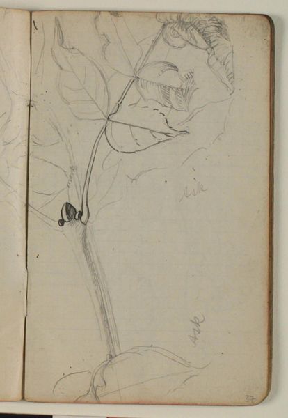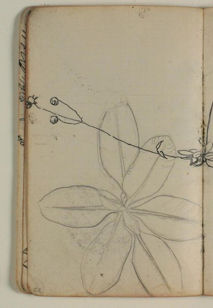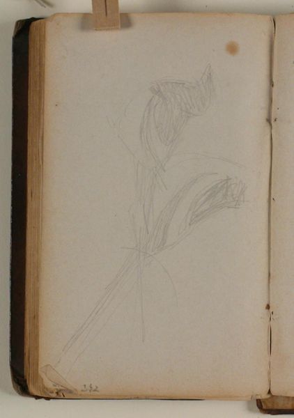 Curator: Here we have Niels Larsen Stevns' "Blomsterstudie," dating from 1937-1938. It's currently held at the SMK, the Statens Museum for Kunst. Editor: Immediately striking. Such delicacy rendered simply in pencil on what looks like standard notebook paper. There’s a rawness that speaks volumes about process, the immediate capture of an observation. Curator: Indeed. Consider the context. Stevns, deeply involved in the Danish art scene, made this study amidst rising socio-political tensions in Europe. How does the simple subject matter reflect, perhaps, a desire for the tranquility of the natural world in contrast to impending upheaval? Editor: That connection between socio-political context and materials is critical. It feels very immediate. We are given to wonder, how the availability of certain paper affected how the art piece itself was crafted and presented within those contexts. It’s not high-art canvas, it’s a readily available resource – reflecting potentially both necessity and accessibility. Curator: Precisely. The very act of sketching in pencil allows for spontaneity, a direct link between the artist's eye, the subject, and the page. This intimacy encourages us, the viewers, to imagine the moment of creation and it makes this drawing very charming to a public that lived through political turmoil. Editor: It makes us also think about the means of artistic labor. This wasn’t something created in a rarefied studio but more like sketched out somewhere, on site. So, how did the means of the flower's capture shift how it was presented? And ultimately affect how accessible art would be? Curator: An interesting point. Did he present the drawing in any meaningful venues, though, to enhance the public experience or awareness around similar creations? Editor: Perhaps not deliberately or widely. Perhaps for his studio members? But the accessibility of the materials still signals something significant. Curator: Well, regardless, the composition's raw elegance resonates even now. I wonder, looking at his other landscapes, did they hold as much potency through similar sketching processes as did this beautiful creation. Editor: Perhaps that ease is itself potent and worthy of further exploration through the material. The social context, plus material, means process became an inextricable ingredient of it’s lasting impact.