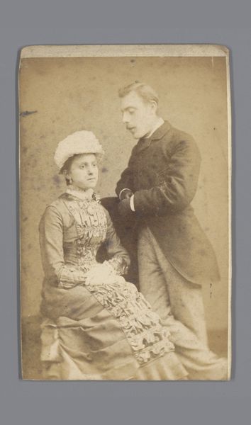 This photographic reproduction of a painting was created by an anonymous artist, sometime around the late 19th century. It depicts a man and a woman in what appears to be a pleasant conversation in a garden. The image itself offers a window into the cultural values and social norms of the time, particularly regarding gender roles and courtship. It seems to romanticize intimate social interactions. The clothing of the man and woman is of a style that suggests wealth and social status. The artwork's existence as a photographic reproduction raises interesting questions about the role of art in society, particularly in the context of late 19th-century Europe. It may have democratized art by making images more accessible to a broader audience through mass production. Art historians would use a variety of sources, including exhibition records, art criticism, and social histories, to understand the cultural significance of this reproduction. The meaning of art is always contingent on its social and institutional context.