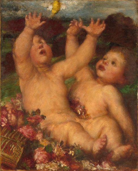 J.C. Leyendecker created this image of a baby yawning amidst flowers. The image speaks to the cultural movement towards sentimental depictions of childhood. Consider the way Leyendecker, a gay man in the early 20th century, navigated societal expectations and personal expression. Leyendecker’s work often idealized the male form. While this piece veers from that focus, note the idealized representation of childhood innocence, a theme popularized during the Victorian era. The child is nestled among vibrant tulips, crocuses, and violets, symbolizing rebirth and new beginnings. These flowers represent the re-emergence of life after winter's dormancy, yet the infant's yawn suggests a more complex emotional landscape. The image evokes both tenderness and a sense of life's cyclical nature. The contrast between the child’s vulnerability and the vibrant, resilient flowers creates a poignant meditation on growth, change, and the passage of time.