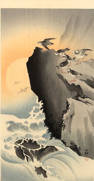 Editor: So, this is Theodor Kittelsen’s "March," created in 1890 using watercolor and ink. It depicts two ravens perched on a snow-covered branch. There's a stark contrast between the dark birds and the muted landscape behind them... the overall feel is quite ominous, actually. How do you interpret this piece? Curator: Ominous is a good word. Think about Kittelsen's historical context. Norway in the late 19th century was experiencing a surge of nationalism alongside a fascination with folklore and the darker sides of nature. The raven is a potent symbol, isn’t it? Traditionally linked to death and prophecy across many cultures, it certainly resonated with the rising tide of Symbolism. Editor: Definitely. But are you saying the ravens are solely symbolic here? Could they also represent something more immediate within Norwegian society at that time? Curator: It's not an either/or situation, really. What were the prevailing cultural anxieties then? Rapid industrialization, urbanization... Loss of traditional ways of life. Perhaps these birds aren't just messengers of doom, but represent a disquiet about the present and the future. Notice how they are huddled together almost for support on a thin branch of existence, against the stormy background. Would that change your idea of this art? Editor: Absolutely. It's not just a dark omen; it's about societal anxieties being manifested visually. Curator: Precisely. And how the institutions and artists reflected these feelings into forms that appealed to public emotions in those periods. How do the landscapes, use of watercolors or the drawing itself affect your view on how that kind of nationalism developed and got rooted in people? Editor: Thinking about it now, I realize the art becomes a social commentary that’s visually striking! It uses widely understandable signs of danger, but also paints in feelings of longing and perhaps hopelessness! Curator: Yes, It truly reveals the potential for art to encapsulate socio-political sentiment. Thank you for this discussion.