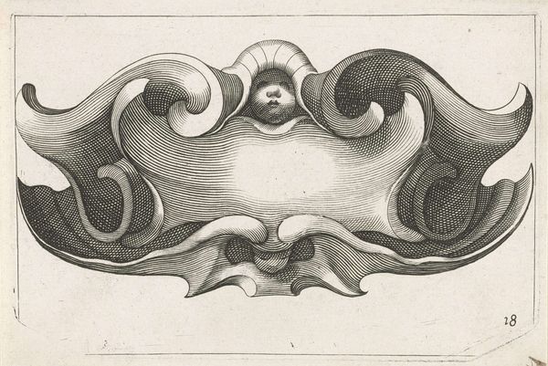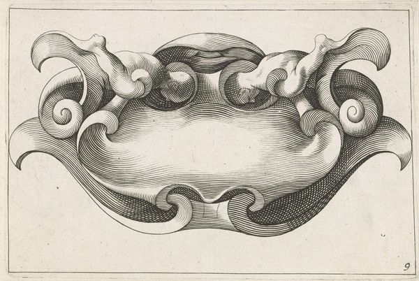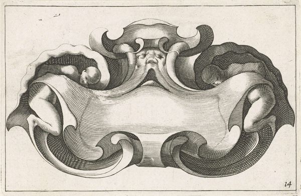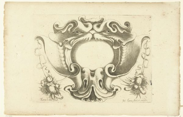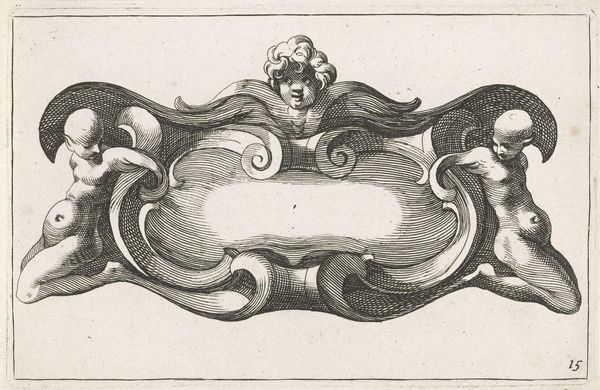 This horizontal cartouche with two cherubs was created by an anonymous artist. The print provides an intriguing glimpse into the symbolic language of its time. Cartouches like these were frequently used in heraldry and official documents to add a flourish of authority and importance. The cherubs or putti represent innocence, and a connection to the divine, reflecting the values of the cultures that deployed them. Their prominence speaks to the religious and moral expectations placed on individuals, particularly within the context of family and societal structures. At the same time, their nakedness raises questions around the idealization and control of the body. The blank space within the cartouche invites reflection. What narratives are included, and whose stories remain unseen? These empty spaces implicitly address issues of power, representation, and the selective nature of historical records. The artist prompts us to think critically about whose voices are amplified and whose are silenced within broader cultural narratives.