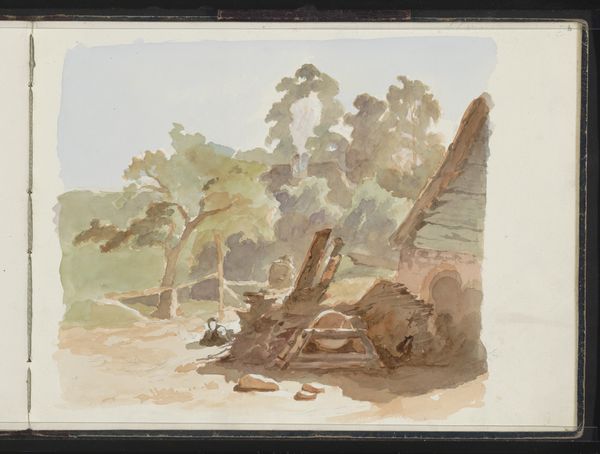 Editor: Here we have "Autumn landscape near the Taunus," by Karl Peter Burnitz. It's made using watercolour, drawing and paper. The soft colours create quite a subdued, serene mood for me. How would you interpret this work? Curator: Ah, yes, Burnitz. I find this landscape whispering secrets, don't you? It’s as if the trees themselves are exhaling a final, golden breath before winter’s hush. Notice how he's layered the watercolor, almost like memories fading into the landscape. Have you ever stood on a hill and felt the wind carry the scent of turning leaves? Editor: I have! It feels exactly like this. Is that layering typical of landscape works at the time? Curator: Indeed. Burnitz seems to be tipping his hat to the Hudson River School chaps as well. They were keen on capturing nature's moods – its sublime power, if you will. What is fascinating for me, do you notice those slightly darkened parts. Is that something that brings attention to one’s memory of that season and landscape? What is your view of this? Editor: I see it, I guess those dark areas may reflect Burnitz's own sense of impending loss. It almost feels elegiac. Curator: Exactly! I see he offers us more than just trees and hills; perhaps also a touch of melancholy with its charm. What a delicious blend, huh? Editor: That's really beautifully put. I’ll never look at an autumn landscape the same way again! Curator: Maybe that´s how we can learn from and enjoy paintings that touch our souls?