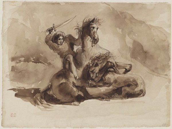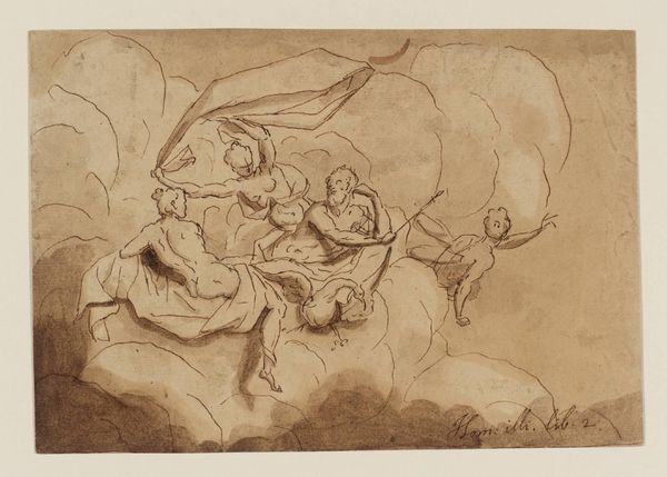 Giacinto Brandi’s Centaur Fighting with Lion was executed with pen and brown ink, heightened with white gouache, on laid paper. The choice of materials here is critical. Brandi’s swift lines and bold strokes were made possible by the smooth surface of the paper and the fluid quality of the ink. The laid paper would have given texture and weight to the drawing. The result is a dynamic composition, full of energy and movement, capturing a dramatic moment of struggle. The brown ink, applied with varying pressure, creates a sense of depth and volume. The white gouache adds highlights, enhancing the contrast and emphasizing the muscular forms of the figures. This drawing is not merely an aesthetic exercise, but a powerful expression of human struggle and dominance over the natural world. By considering the materials and processes involved, we gain a deeper understanding of Brandi's artistic intentions.