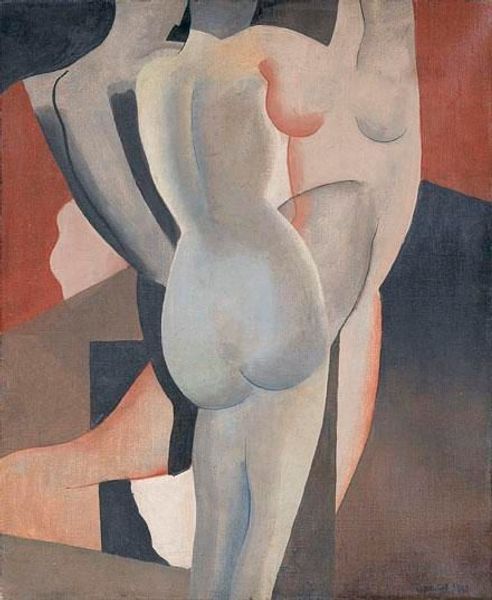 Curator: Upon viewing this work, "Sleep," painted by Pablo Picasso in 1932, I’m immediately struck by the distorted shapes and serene composition. It evokes a peculiar sense of peace and vulnerability. Editor: Picasso painted this piece using oil paint, and the sensuality and exaggeration is clear even from a distance. Curator: Yes, the female figure rendered in a semi-abstract manner embodies a very particular gaze. Looking closely at the application of the paint, one is reminded that the materiality here isn't aiming for photorealism; instead, it pushes against academic representation. Picasso painted his young muse Marie-Thérèse Walter in a state of repose; in exploring these themes, this canvas touches upon ideas surrounding sexuality and subconscious desires during the Surrealist period. Editor: The way the form melts across the chair underscores those subconscious explorations, like dreamscapes materializing through line and color, but if we turn our attention to the canvas and the paint itself, we’ll see that there's not so much impasto texture, with more of a subtle blending, that gives that softness despite its distorted forms. In using the industrial paint materials of his time, it almost reads against the organic nature of his subject! Curator: That contrast is important, but how do you feel that speaks to ideas of gender and the role of women at this historical juncture? There is the idea of passive muses, of artistic appropriation. Walter, for example, had less agency within her social context than Picasso as the acclaimed, celebrated artist. Her portrayal, however gentle or abstracted, embodies elements of those imbalanced dynamics. Editor: That’s where its significance resides—by viewing "Sleep" with these considerations about the female figure through labor and process, it challenges how value gets made both physically and culturally. I think we're better positioned to address not just artistic production here but social production, too. Curator: I find that this engagement allows one to interpret artistic representation as embedded within power relationships, urging all who encounter it to inquire beyond mere formalism toward more difficult yet essential truths about gendered identity itself! Editor: Yes. Through reflecting on Picasso’s choices in materiality and method alongside the sitter and the social world it helps sharpen a needed analysis of this historic and incredibly beautiful piece.