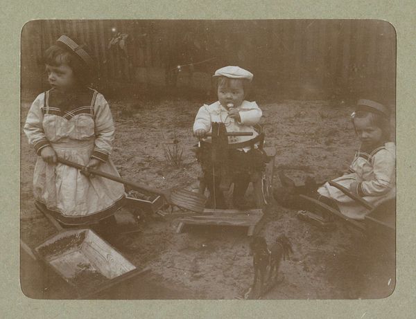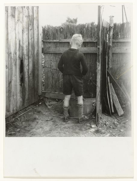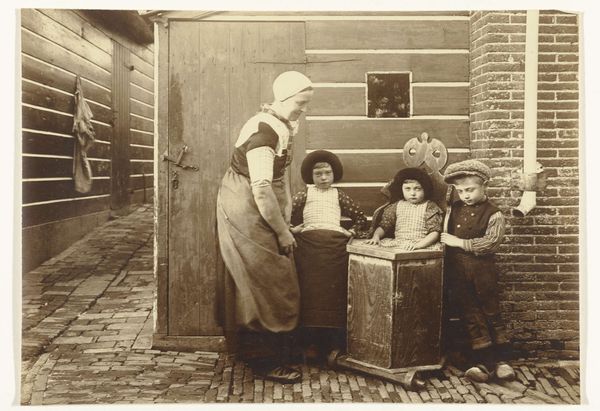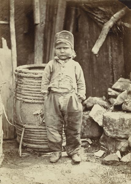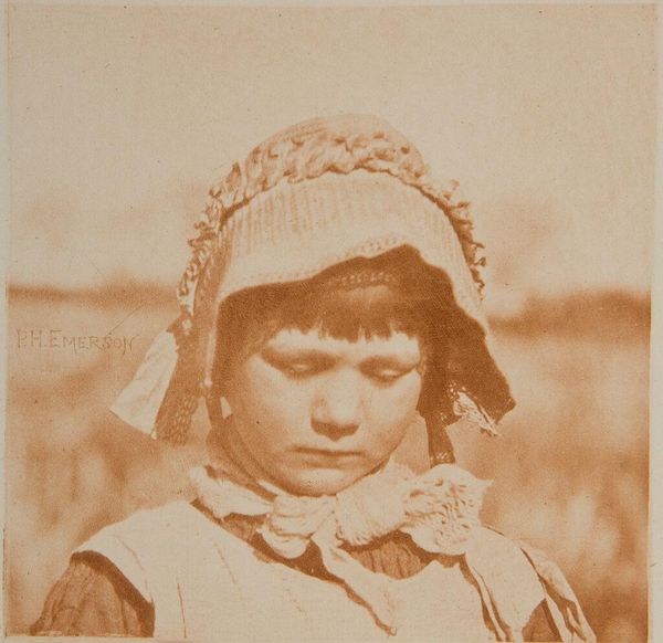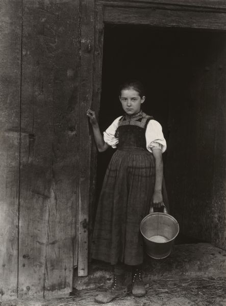 Alfred Stieglitz captured this image, *The Little Milkmaid,* with a camera, resulting in a print with dimensions of 18.8 by 14.2 centimeters. The photograph is structured around a study in contrasts. The milkmaid stands at the threshold of a dark interior, with the rough texture of a wooden door serving as a backdrop to her figure. The stark contrast between light and shadow heightens the image's emotional impact. Stieglitz uses the formal elements of composition, light, and texture to explore themes of innocence and rural life. The girl's solemn expression and traditional dress evoke a sense of timelessness. Yet, this is juxtaposed with her firm grip on the pail, evidence of her labor and connection to the land. The vertical lines of the doorframe, bisecting the frame, draw attention to the semiotic codes implicit in images of agrarian life. The enduring quality of this photograph lies in Stieglitz’s ability to capture the nuances of human experience through the interplay of light and form. It invites us to consider how the structure of an image can convey profound meaning and enduring emotion.