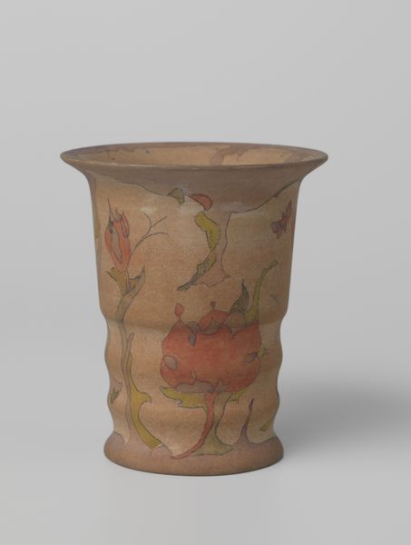 This vase, made by N.V. Plateelbakkerij Ram, features a polychrome design painted with watercolors. The organic, flowing forms swirling across the surface capture the eye, evoking the sense of movement and transformation. These colorful shapes remind me of a similar motif I've found in ancient Minoan pottery. In both cases, forms intertwine, suggesting a sense of vitality. This motif recurs throughout history, perhaps tapping into a collective memory of nature's cycles and the human desire to represent the unseen forces of life. The fluid nature of the lines and colors here might even be seen as an expression of our innermost selves, revealing emotions and ideas that lie beyond the grasp of rational thought. These symbols, like dreams, communicate through a visual language that bypasses conscious interpretation, striking us with their raw power. Over time, we see it resurface, evolve, and take on new meanings, yet its essence remains—a potent reminder of the interconnectedness of all things.