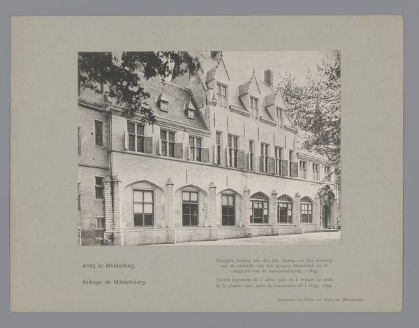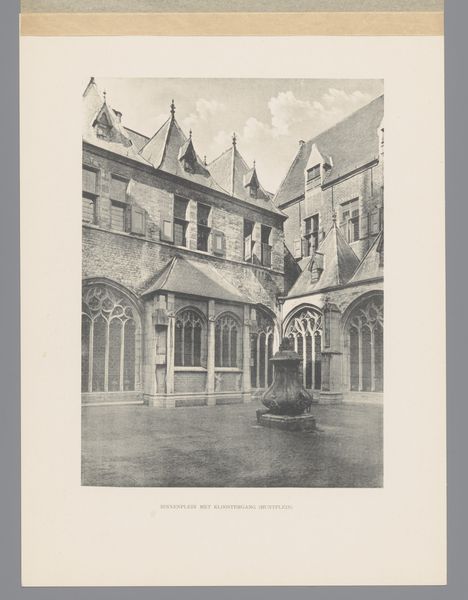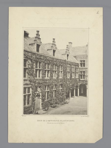 Joseph Maes created this print of the Binnenplaats van drukkerij Plantijn in Antwerp. The photograph is rendered in monochrome, giving the courtyard a timeless quality, almost as if it exists outside of any particular era. The courtyard's architecture is presented with a keen eye for geometric precision. The façade is neatly divided into symmetrical sections, emphasizing the grid-like arrangement of windows and arches. Note how the orderly pattern of the architecture contrasts with the organic, sprawling ivy. This juxtaposition introduces a tension between the constructed environment and natural growth, hinting at the complex interplay between culture and nature. The linear perspective creates a sense of depth, drawing the eye into the heart of the courtyard, yet the composition maintains a certain flatness, resisting complete spatial immersion. This play with perspective reflects a modernist engagement with representation, challenging traditional notions of pictorial space. The photograph invites us to consider how structures and signs intersect to produce meaning.