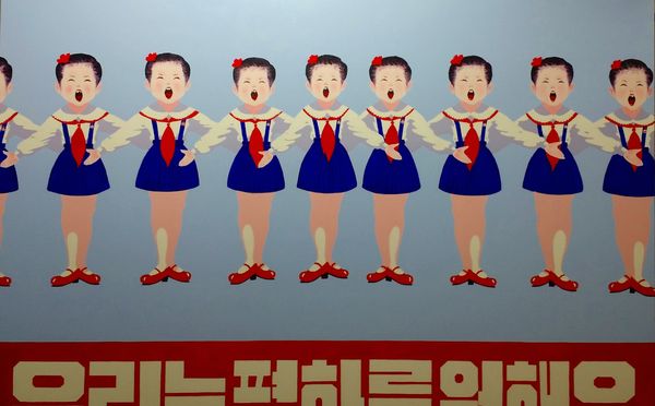 Sun Mu made this painting, using acrylic on canvas. It depicts rows of children in uniform. Consider the act of painting itself. Here, it is more than just a way to represent an image. The painting process reflects the mass production and standardization often associated with political ideologies. The repeated figures and careful execution echo the mechanization of labor and the concept of uniformity, which are often used to exert social control. The artist engages with traditions of fine art, but also with the aesthetics of propaganda and political art. The use of acrylic on canvas, a seemingly traditional medium, adds another layer to the work. The canvas becomes a surface where the tensions between individual expression and collective identity play out. The artist's labor-intensive process, involving careful brushstrokes and attention to detail, contrasts with the themes of mass production and uniformity depicted in the work. Sun Mu’s choice of material and method is crucial to understanding the painting's full meaning, blurring the lines between fine art and social commentary.