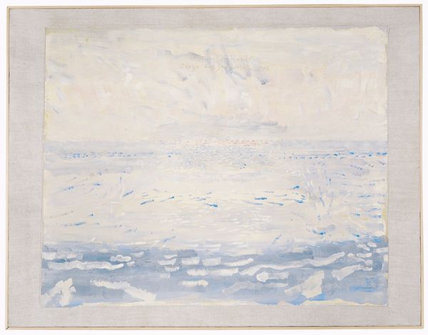 Curator: What we have here is Theodore Roussel's "The Sea at Bognor" from 1895. It’s watercolor and touches of print on paper, currently held at The Art Institute of Chicago. Editor: Wow, my first impression is... minimalist Zen. It's so pared down; it's practically a sigh on paper. Does anyone else see that simplicity, or am I just having one of those days? Curator: Well, simplifying things, getting to the essence... it was definitely a strategy, and Bognor itself, at the time, was really transitioning, economically and socially, a place caught between its agrarian past and aspirations of becoming this fashionable seaside resort. This work, in a way, really embodies that liminal state. Editor: Liminal is absolutely the word. It feels like a moment of reflection between breaths. Those horizontal strokes—the gradations of greens and blues. How do those simple color fields manage to evoke such a powerful sense of depth, or vastness? Curator: He had a real knack for capturing atmosphere, didn't he? And you know, watercolours might seem 'light' to some, but they were quite loaded during that era. Think of artists like Turner, radically transforming landscapes, commenting on shifting social structures, ideas of industrialism and colonialism. Even with its lightness, it comes from a lineage that carried weight. Editor: Absolutely. There’s something inherently political about landscape art – about who has access to the land, who gets to represent it. Was Roussel actively engaging in that dialogue? Curator: Roussel often found himself aligned with avant-garde circles challenging established artistic norms. He pushed boundaries of representation. Editor: You know, seeing it again, I find myself drifting. Just looking at it—the rhythm of the washes almost mimics the tides. It invites contemplation, even escape. Curator: I think that’s so true! The essence of capturing fleeting experience – an artist seeing the world, distilling a personal, internal experience into colours on a paper. It's profoundly meditative. Editor: Precisely, capturing, with such simplicity, that universal experience that unites our human vulnerability with the sublime indifference of the natural world! That’s why this one really sticks with me.
