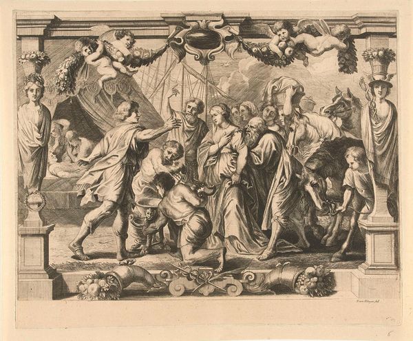 Marcantonio Raimondi made this print, *Brand in de Borgo*, sometime in the early 16th century, using engraving. This is an intaglio process, where the design is incised into a metal plate. Ink is then forced into these lines, and the surface wiped clean. Finally, the image is transferred to paper under high pressure. Raimondi was a key figure in the rise of printmaking as a means of reproducing and disseminating artworks. This particular print showcases his technical skill; the cross-hatching, tiny dots and fine lines, create a remarkable range of tones and textures. You’ll notice the dramatic scene unfolding – figures desperately trying to escape a fire. Consider the labor involved: the artist’s patient work with engraving tools, and the press operator’s physical effort in producing each print. The engraving process may be ‘mechanical,’ but here it allows for an intimate, emotional connection with the viewer. This print reveals how technical processes can be used to tell very human stories.