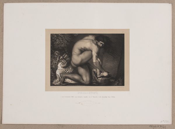 Curator: Looking at this print, "Tableau Parlant" by Pierre Guillaume Metzmacher, I’m struck by the intimacy of the scene. Editor: Yes, it feels like a stolen moment. The image of the lovers in what seems to be a covert encounter, speaking with each other in a language that only they understand. Curator: Exactly. It captures the romantic spirit of the era. Metzmacher, born in 1815, was working during a period when representations of love and passion were being increasingly scrutinized by societal norms. Editor: I see symbolic elements at play too. The water flowing behind them and the dark vegetation almost conceal them, adding a certain weight to the image. Curator: It is curious to consider how this imagery was received by the public at the time. Were they romantic ideals or cautionary tales of clandestine relationships? Editor: Perhaps both. The enduring power of such images lies in their capacity to hold multiple layers of meaning, shaped by culture and time. Curator: Indeed. These visual echoes across history continue to engage and provoke us. Editor: It's a reminder that images are never just what they seem; they are vessels carrying complex human emotions.