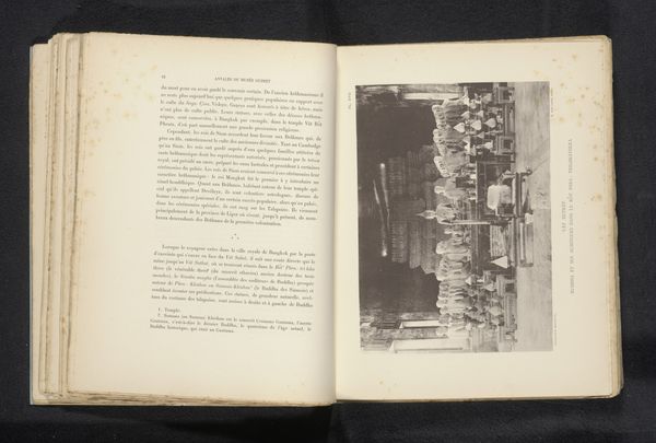 Curator: This is a fascinating albumen print from before 1895, part of what appears to be a personal sketchbook by Michel Berthaud. The image shows "Verschillende huizen aan en op een water en een kano," which translates to "Various houses on and on water and a canoe." Editor: It has a rather melancholy air, doesn't it? The aged paper and sepia tones lend a distant, almost ghostly feel. The vertical orientation adds to that sense, compressing the scene. Curator: Indeed. And this aesthetic taps into broader discussions of Orientalism. It's not simply a landscape; it is mediated through the gaze of a European artist engaging with a culture and place distinctly other from their own. Editor: But notice how Berthaud captures the light? It creates this beautiful tonal range across the structures and the water, providing form and depth. I'm particularly drawn to the textures; there's a certain richness created by the tonal variation of the medium. Curator: Certainly. It raises critical questions of representation, doesn’t it? Who gets to tell whose story, and how does the power dynamic inherent in that act manifest visually? We might explore the ethics involved in visually framing other cultures. Editor: But is it not about representation? Observe how the architecture is depicted. Lines create forms, how the shape of that roof draws you in. The eye dances across textures from water to structures! The beauty is in the medium. Curator: Of course, considering these works within their socio-political and artistic milieu is essential to grasp Berthaud's work in its entirety. It becomes more than just an artistic depiction. Editor: I still find that this artistic experience, which begins and ends within the framework, makes engaging art all the more enjoyable.