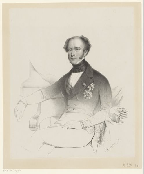 Curator: Welcome. Here we have "Portret van de graaf van Clarendon," or "Portrait of the Earl of Clarendon," dating somewhere between 1842 and 1887. This intriguing work, crafted with pencil, resides here at the Rijksmuseum. Editor: What immediately strikes me is the sheer confidence conveyed through the use of line. Look at the assertive contouring of the jawline and the meticulous detailing of his coat—formidable. Curator: Indeed. Considering its creation during the 19th century, likely reproduced as an etching, we can see how images such as these helped circulate aristocratic personas within broader social and political circles. It wasn’t simply about likeness but propagating influence. Editor: Precisely. Notice how the artist skillfully uses hatching and cross-hatching to create volume and depth. The way the light catches his brow and the folds of his jacket speaks to the artist’s mastery of technique. Semiotics come to mind when analyzing details like the bowtie as conveying specific messages about social status. Curator: Also worth noting the labor and production involved in creating and disseminating prints at this scale. Someone would’ve had to produce each drawing; engravers, printers, publishers all played significant roles in mediating images. That shapes who and what were seen! Editor: Yes, I agree; it prompts thinking of how this artwork participates within established aesthetic norms. There's something powerful here about the artistic vocabulary being used and understood universally back then; his image clearly marks nobility and sophistication using a universally recognizable visual language. Curator: A language deliberately manufactured to solidify certain narratives. These portraits served very precise political functions during a period defined by rising social inequality and power imbalances! How an Earl wants to be perceived really. Editor: I concede the deliberate construct. But observing this interplay—line, shadow, aristocratic air, historical context—adds richness to this silent composition. Curator: Agreed. Reflecting upon both material reality and artistic intent adds depth and breadth to this portrait, illuminating 19th-century social constructs of class. Editor: In totality, a single image revealing complexity of process, social messaging and aesthetic language simultaneously.