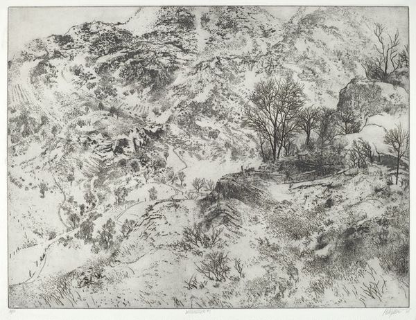 Editor: So, this is "Landscape with Salmon Traps" by David Cox. The pencil drawing feels so immediate. What do you see in this piece? Curator: I see a study in labor and resource extraction. The salmon traps – consider their construction, the labor involved, and the impact on the salmon population. Cox isn't just showing us a pretty landscape; he's hinting at a system of production and consumption. How does the materiality of pencil contribute to this reading? Editor: It feels very raw, immediate. Like a quick sketch capturing a real-world moment. Curator: Precisely. Cox's choice of a readily available, inexpensive material connects to the everyday labor depicted, democratizing the artistic process and challenging notions of high art. Editor: I never thought about the pencil itself adding to the meaning that way! Curator: Thinking about the means of production can change our understanding of art.
