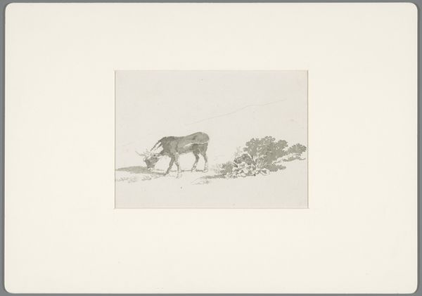 Armand Collard etched “Two Donkeys on the Beach” on paper sometime in the late 19th century. Note how the composition is neatly divided into zones: the light sandy foreground, the flat expanse of the sea, and the muted sky above. Collard plays with scale and perspective, placing one donkey prominently in the foreground, casting a shadow, while the other is a mere silhouette in the distance. The scene evokes a sense of melancholy. The use of etching allows for detailed linework, especially noticeable in the texture of the donkeys' coats and the subtle gradations of tone in the sky and sand. Consider how the artist disrupts traditional landscape expectations by focusing on these animals. This challenges our conventional understanding of beauty, prompting us to see value in the mundane. The stark simplicity of the scene, combined with the delicate etching technique, invites a reflection on nature and representation.