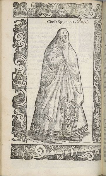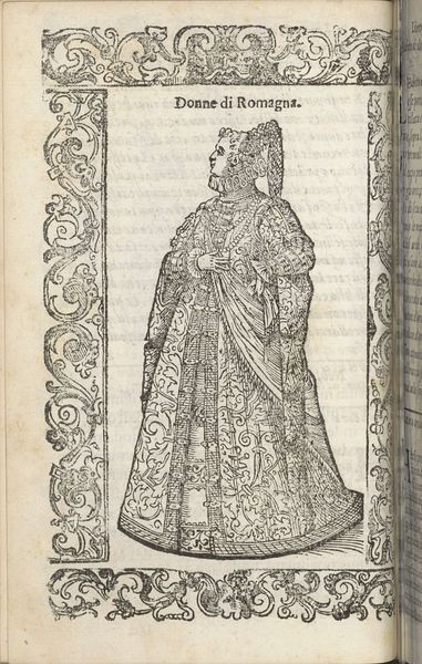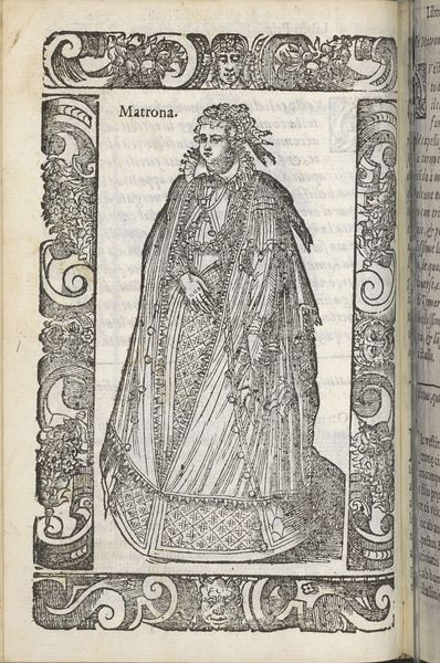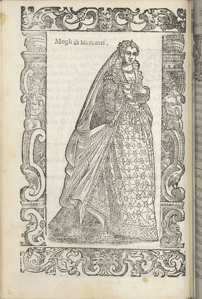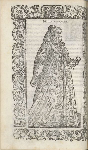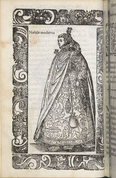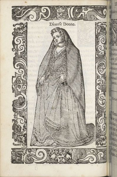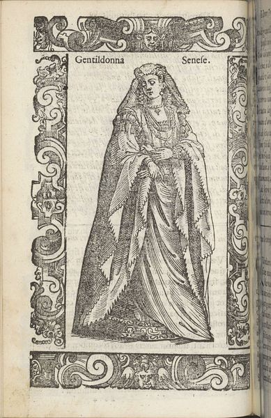 Curator: This engraving, titled "Citelle Nobili," dates back to 1598 and is attributed to Christoph Krieger. It's a striking example of portraiture from the period, rendered in the linear style characteristic of Northern Renaissance prints. Editor: The immediate impression is one of restraint, perhaps even melancholia. The woman’s posture and downcast gaze, combined with the somber monochrome, evoke a sense of subdued emotion. Curator: Indeed, it’s crucial to contextualize this piece within the social conventions of the late 16th century. Prints like these often served as visual records of status and identity, circulating amongst the elite. How might we interpret this woman’s attire and presentation in relation to gender roles and societal expectations of the time? Editor: Absolutely, her clothing, every bit, reflects wealth and high social standing; still the pose conveys modesty. Considering feminist theory, we can question how much agency she truly had in shaping her own representation. Is this image a true reflection of her, or is it constructed to fulfill the patriarchal ideals of feminine virtue? Curator: The composition and ornamentation – look closely – also offers a compelling insight into the material culture of the period and how those who consumed such images affirmed these visual messages in daily life. What impact did art play on gender roles in everyday interactions? Editor: And what of its reception? These prints circulated amongst a specific demographic, reinforcing certain ideals within those social circles. They contributed to a visual dialogue, where class and power were displayed and negotiated through images like these. Did “Citelle Nobili” start, advance, or reflect a political narrative regarding wealth and position? Curator: The level of detail achieved through the engraving technique itself speaks volumes. The meticulous lines create texture and depth, showcasing the artist's skill and the patron's investment. I consider how artistic techniques serve political messages. Editor: Yes, and I see it how we see power still functioning in a capitalist environment. To engage with this print now means we have an important duty to acknowledge its position in perpetuating historic power imbalances while hopefully using that knowledge to strive towards change. Curator: Precisely. By understanding its historical context and critical implications, we appreciate this print, "Citelle Nobili", not just as a portrait, but also as a complex artifact embedded in a network of social and cultural forces.