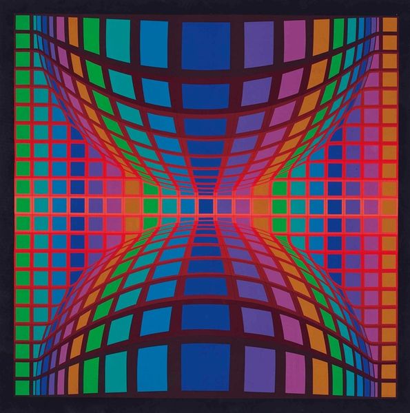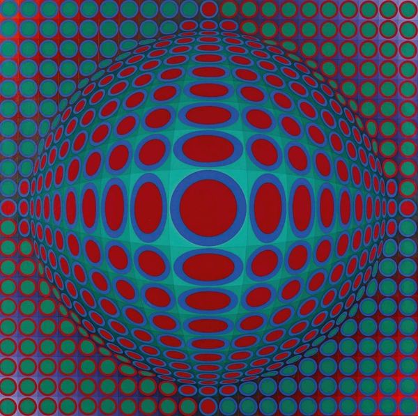 Victor Vasarely made this piece, Composition with Red, Yellow, and Green, using geometric forms and bright colors to create an optical illusion. He's playing with how we see, almost like a visual game. Look at how the squares shift and bend, like they're being pulled towards some invisible force. The colors, so bold and flat, add to this effect. It's not about depth or texture; it's about surface and the way our eyes try to make sense of it all. This one little green square inside a yellow frame, it sits there so unassuming, but it's crucial! It anchors the whole composition, giving your eye a place to rest amidst all the visual gymnastics. Vasarely was super interested in how art could mess with your perception. Think of Josef Albers, another colour guy, who knew colour could be a whole world in itself.