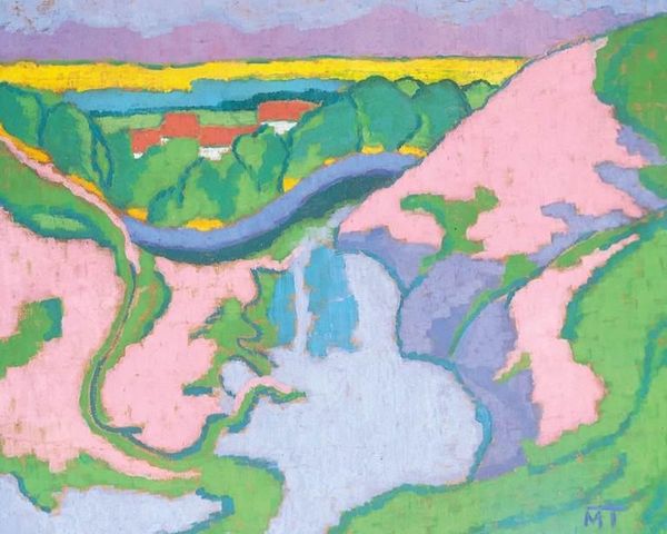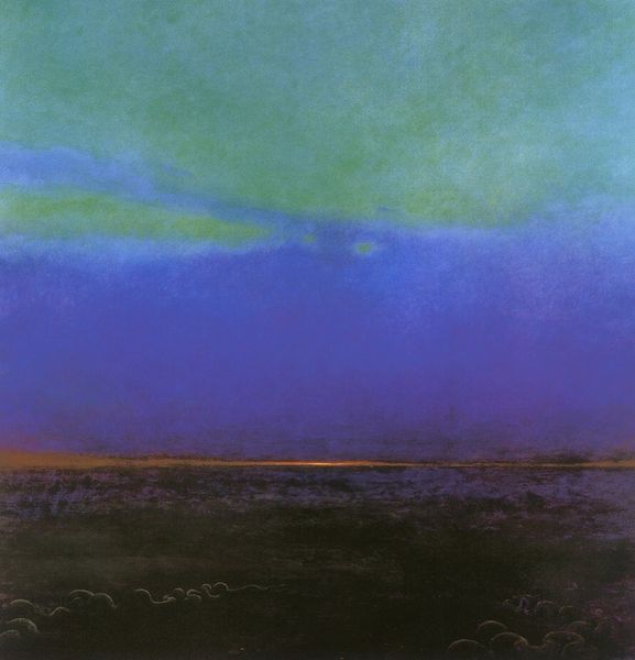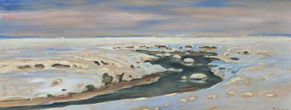 Curator: This is Piet Mondrian’s "Dune Landscape," painted in 1911. You can find it on display at the Gemeentemuseum in The Hague. Painted with oil on canvas, this artwork stands as a compelling example of early modernism. Editor: My first impression? A deep, breathy hush. It feels like standing at twilight, watching the land breathe in the last of the day’s light. The composition is stark. Curator: The constrained palette certainly lends to that. Look at the deliberate brushstrokes. You can clearly see how Mondrian employs layering and texture to build up this abstracted vista. It’s less about realistic depiction and more about deconstructing the landscape. We should observe that he completed it before fully transitioning to his signature geometric style. Editor: Absolutely. There's something so raw about the visible brushwork—almost vulnerable, don’t you think? It betrays a struggle, a seeking…it's very personal. This tension between the observed world and abstraction creates such an emotional pull. It whispers rather than shouts. Curator: Precisely. We also have to consider the socio-cultural context. Early 20th century Holland saw growing industrialization. Artists began to explore how to represent changing perspectives. Mondrian sought to grasp the essential forms of the natural world while the cultural landscape transformed around him. The visible labor—his brushstrokes—hints at the manual effort inherent to earlier ways of life, almost as a contrast to encroaching industrial mechanization. Editor: Ah, I see what you mean. A quiet protest, perhaps, rendered in strokes of twilight. Thinking about the industrialization aspect, it makes the subtle geometry even more poignant. The dunes aren’t chaotic; they're ordered, but in a soft, yielding way. Curator: Well, looking closely reveals the underlying order Mondrian sought in everything, I think. I suppose both are essential, like material and spirit, perhaps? Editor: Maybe it all melts down into interconnectedness and interdependence. Either way, I certainly wouldn't mind watching twilight descend on those dunes.