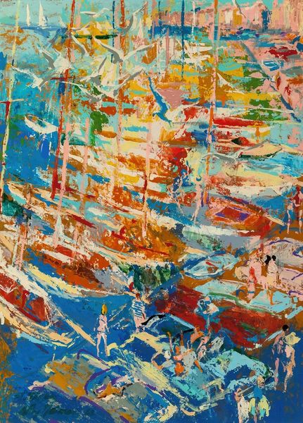 Endre Rozsda made "Plein poids dans le rêve" using paint, but what kind? It's hard to say, it's a whole mixed up affair of colour and form. The surface is a playground of textures, where each color seems to have its own weight. The blues and grays at the bottom feel grounded, solid, while the yellows and oranges at the top fizz like distant fireworks. Look at how he’s layered the paint – thin washes here, thick daubs there. It's like Rozsda was building up this dream, bit by bit, letting each layer react to the one before. Notice the way some strokes are dragged across the canvas, leaving these little trails of color that bleed into each other. It's in these moments, these little accidents, where the painting really comes alive. Rozsda, with his puzzle-like compositions, reminds me of Guston, how he embraced the messy, the unresolved, the sheer joy of pushing paint around. It’s a reminder that art is always a conversation, a push and pull between what we see and what we feel.