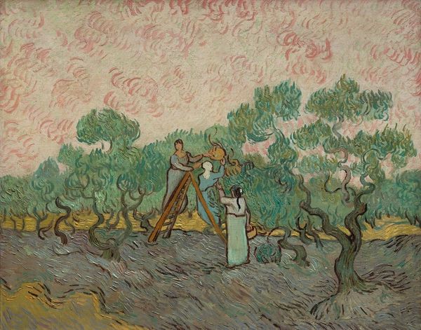 Vincent van Gogh made this painting, First Steps, after Millet, using oil paint on canvas. The materiality of oil paint is crucial here. Van Gogh was heir to a long tradition, but pushed the medium to its expressive limit, using the viscous quality of the paint to create a tangible surface. The thick brushstrokes weren't just about depicting a scene; they embodied it. Look at the figures; the laborers attending to the land. Van Gogh chose this subject matter quite deliberately; he identified with the working class, and saw dignity in their labor. The painting is based on a work by Jean-François Millet, an artist known for his sympathetic portrayals of rural life. Van Gogh’s version amplifies the original’s emotional impact through his own energetic application of paint. The sheer physicality of his technique transforms the act of painting into a kind of labor, mirroring the work depicted. This approach dissolves any lingering distinction between fine art and craft.