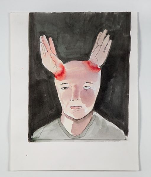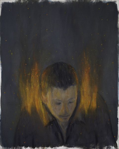 Editor: So here we have Alfred Freddy Krupa’s "My nephew Emanuel," created in 2021 using mixed media and oil paint. I'm struck by the contrast between the figure's very solid, grounded presence and the almost frantic energy of the lines in the background. What do you make of it? Curator: Immediately I'm drawn to consider Krupa's process here. The visible brushstrokes and the layering of paint speak to the physical act of creation. The contrast isn’t just visual. The background, are these marks quickly applied, seemingly spontaneous gestures, while the portrait appears built through a more considered, methodical application of labor. Where does this contrast originate? Editor: Do you think it relates to the “mixed-media” aspect? The way the figure seems so precisely rendered using oil, versus… whatever else is going on in the background? Curator: Perhaps. But I am compelled to understand what influenced these material choices and how the consumption of this art and its cultural significance plays out. This isn't simply a portrait, it is a commodity embedded within societal structures. Is Krupa perhaps drawing our attention to the art market itself? To question what is considered worthy of careful depiction, and what is rendered with apparent ease? Editor: That’s a really interesting angle. I was mostly thinking about formal elements. But considering the social implications behind the medium…it makes the portrait far more engaging! Curator: Precisely. By centering our focus on materials and methods, we are compelled to investigate both what lies within the artwork and the socio-economic mechanisms that determine its place. Editor: I’ll definitely look at portraits differently from now on. Thanks!