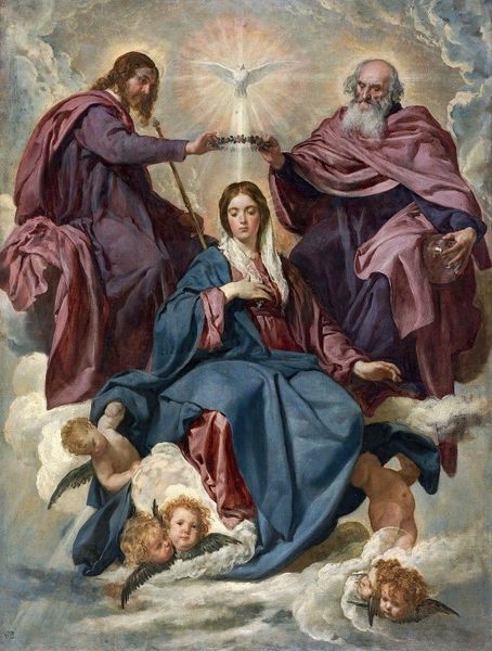 Orazio Gentileschi's "Assumption of the Virgin" captures a moment of divine ascension on a monumental scale. Painted in oil, the artwork immediately strikes one with its dynamic composition, in which figures ascend through layers of clouds towards a radiant, golden light. This light bathes the figures above, contrasting sharply with the deeper hues of the Virgin’s robes and the angels surrounding her. The structure of the piece emphasizes a hierarchy of the divine, with God the Father and Christ positioned above, connected by the dove of the Holy Spirit, visually forming a triangle of holy figures. This arrangement creates a sense of depth and movement, drawing the eye upwards in a spiraling path. The Virgin's open arms and upward gaze invite the viewer to partake in this spiritual ascent, while the attentive angels serve as intermediaries. The carefully orchestrated interplay between light and shadow not only models the figures but also reinforces the theological narrative of transcendence and the divine presence infusing the scene. This formal organization invites contemplation on the complex relationships between the earthly and the divine, challenging our perceptions of space, matter, and spirituality.