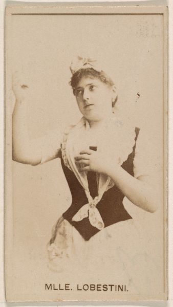 This card was produced by the Kinney Brothers Tobacco Company as an advertising premium, a tiny portrait of Mlle. Sirene printed on paper. The method used here – printing – is a mechanical process, quite unlike the handwork associated with traditional portraiture. The image is crisp, clean and repeatable, designed for mass consumption. This was not originally intended as a precious object, but a throwaway meant to promote the company's Sweet Caporal Cigarettes. It is interesting to think about the amount of labor involved, both in the production of the cards themselves, and also in the creation of the photograph on which it is based. The cigarette industry was also dependent on a largely unseen workforce, harvesting and processing tobacco. While the subject poses in a way reminiscent of fine art portraiture, the card challenges the boundary between art and commerce. It is a reminder that all images – even those that appear to be purely aesthetic – are embedded in social and economic relationships.